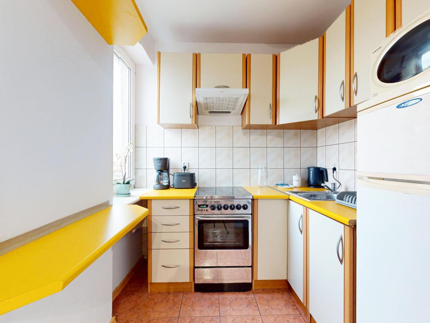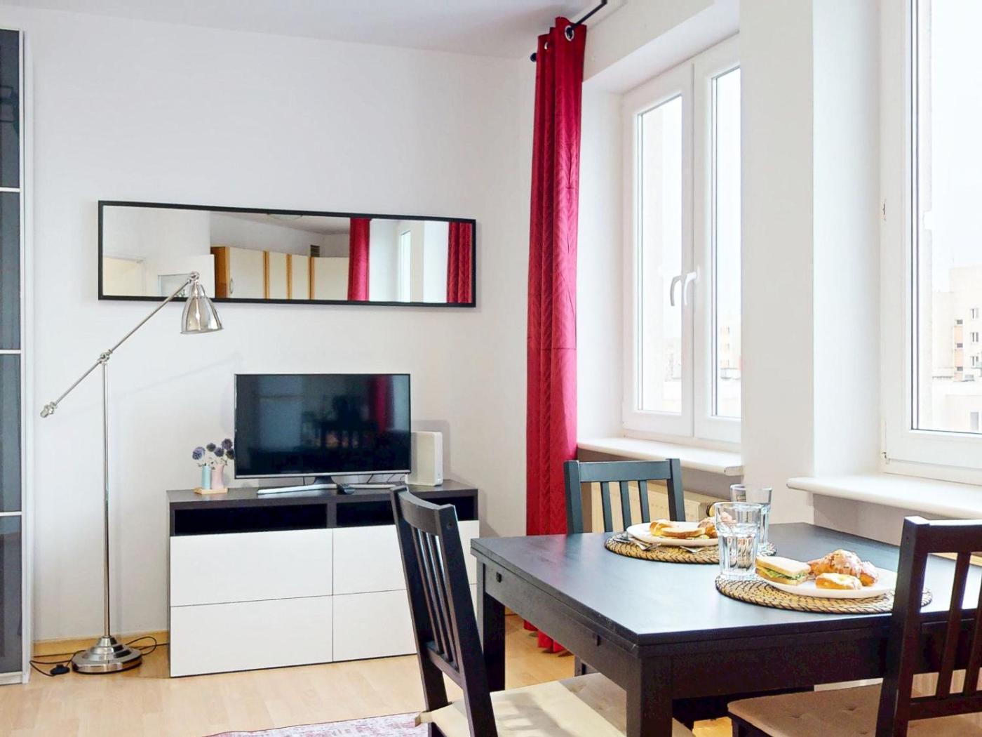Studio typu Standard. In the fully equipped kitchen, guests will find a stovetop, a refrigerator, kitchenware and an oven. The studio provides a washing machine, a private entrance, as well as a private bathroom featuring a bath and a hairdryer. The unit offers 2 beds. Powierzchnia pokoju ok.: 30 mkw.